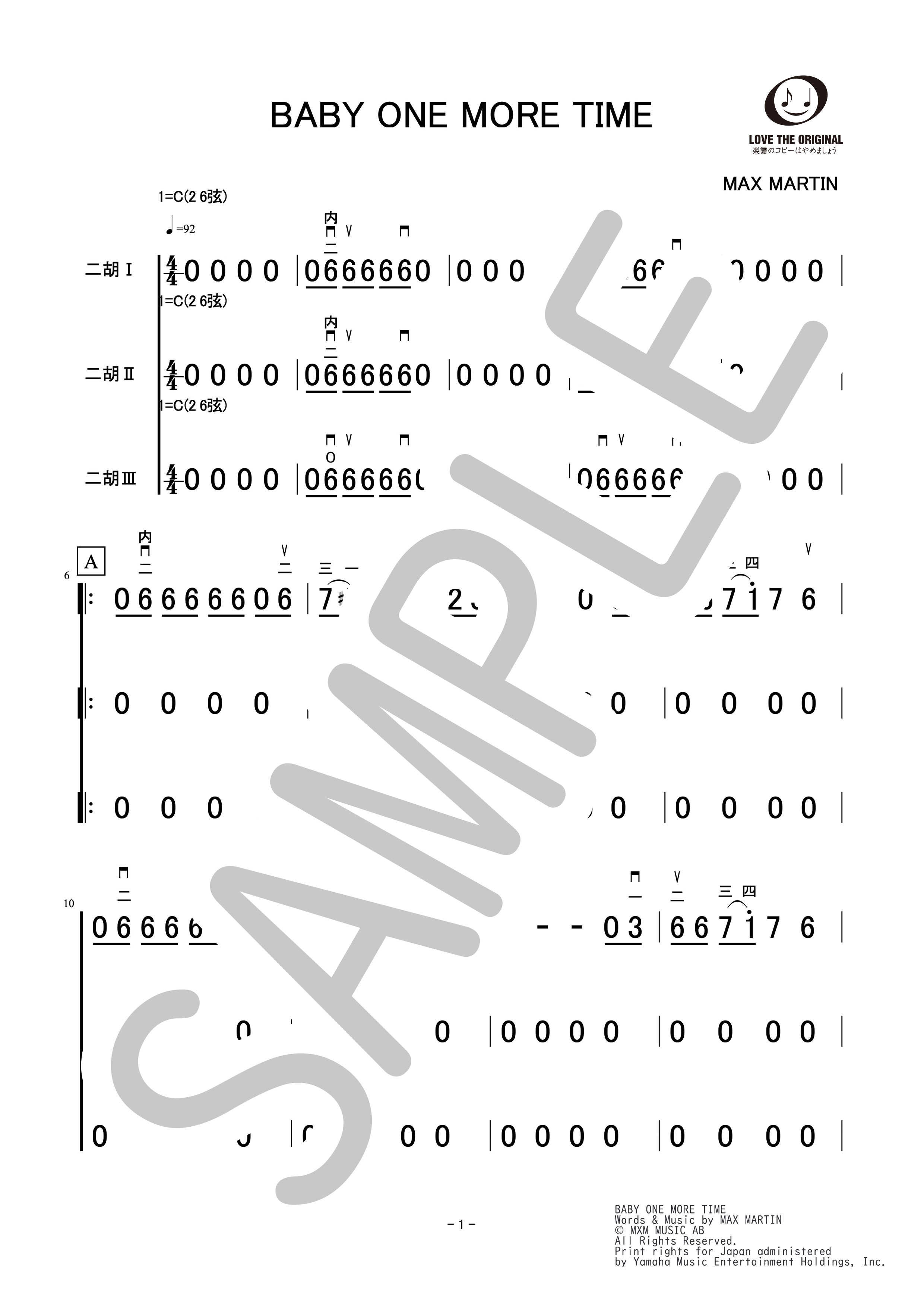 二胡ピース楽譜 《BABY ONE MORE TIME》アンサンブル (伴奏・ガイドメロディ入りCD付き) GKF-109